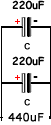 negativo com negativo) você terá um equivalente de 110uF.