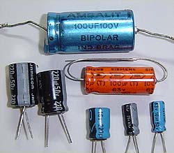 No alto, um capacitor Bipolar e os outros, capacitores eletrolíticos